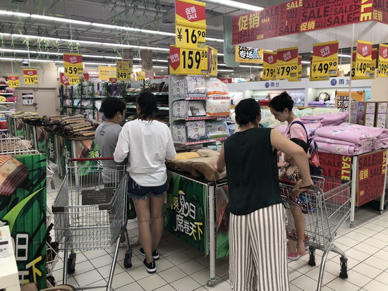 隨著夏日高溫的持續(xù),沈陽多家超市針對高溫天氣開展了“打折”、“贈送”等促銷,將涼席、清涼夏裝、防曬產(chǎn)品等當(dāng)季熱賣商品放在顯眼位置,吸引消費(fèi)者的注意。
