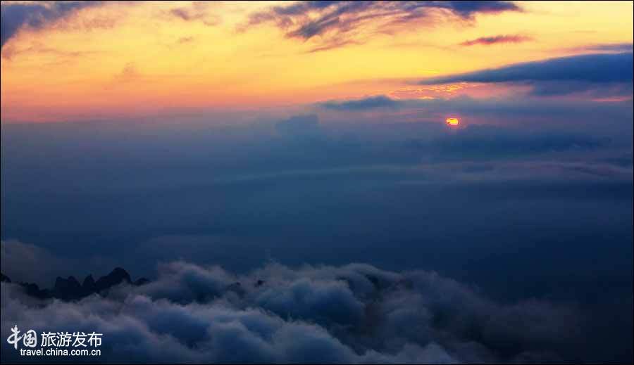 秋天的雨水相對較少,因此,云海出現(xiàn)的概率也少一些。但降雨過后,黃山則常常出現(xiàn)波瀾壯闊的云海景觀,云海飄逸靈動,峰石若隱若現(xiàn),一幅幅布局詭異、構(gòu)圖奇特、節(jié)奏變幻、色彩豐富、氣勢磅礴的立體畫呈現(xiàn)在面前。(葉永清)