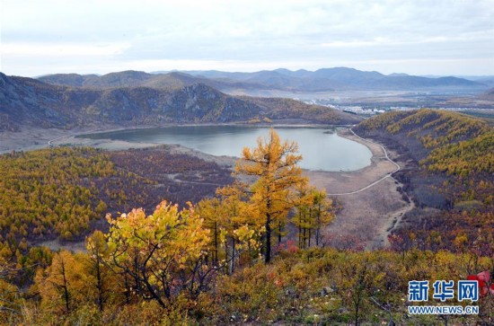 這是10月7日在內(nèi)蒙古扎蘭屯國家級風(fēng)景名勝區(qū)臥牛天池拍攝的深秋景色。新華社發(fā)(王澤蔚 攝)