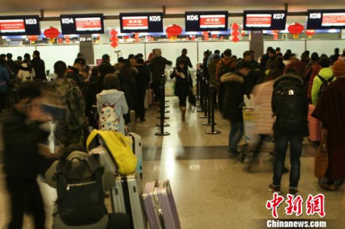 資料圖:1月25日,大批旅客在南京祿口國際機場辦理登機手續(xù)。中新社記者 泱波 攝