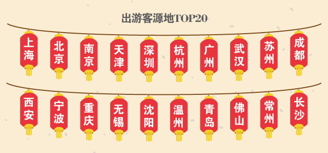 今年春節(jié),哪些城市的消費(fèi)者最熱衷外出旅游?客源地人氣排行榜顯示,出游人次排名前20的城市包括上海、北京、南京、天津、深圳、杭州、廣州、武漢、蘇州、成都、西安、寧波、重慶、無錫、沈陽、溫州、青島、佛山、常州、長沙。