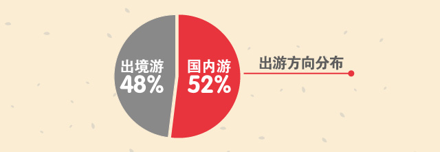 報(bào)告顯示,春節(jié)期間,52%的游客選擇國內(nèi)旅游,48%的游客選擇出境旅游。