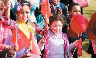 1月20日,在埃及首都開羅,小朋友們參加歡樂春節(jié)大廟會活動。