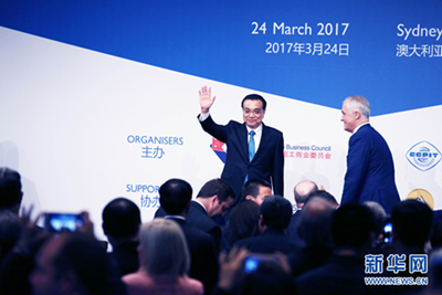 當地時間3月24日,中國國務院總理李克強在悉尼與澳大利亞總理特恩布爾共同出席中澳經貿合作論壇并發(fā)表演講。 新華社記者 姚大偉 攝