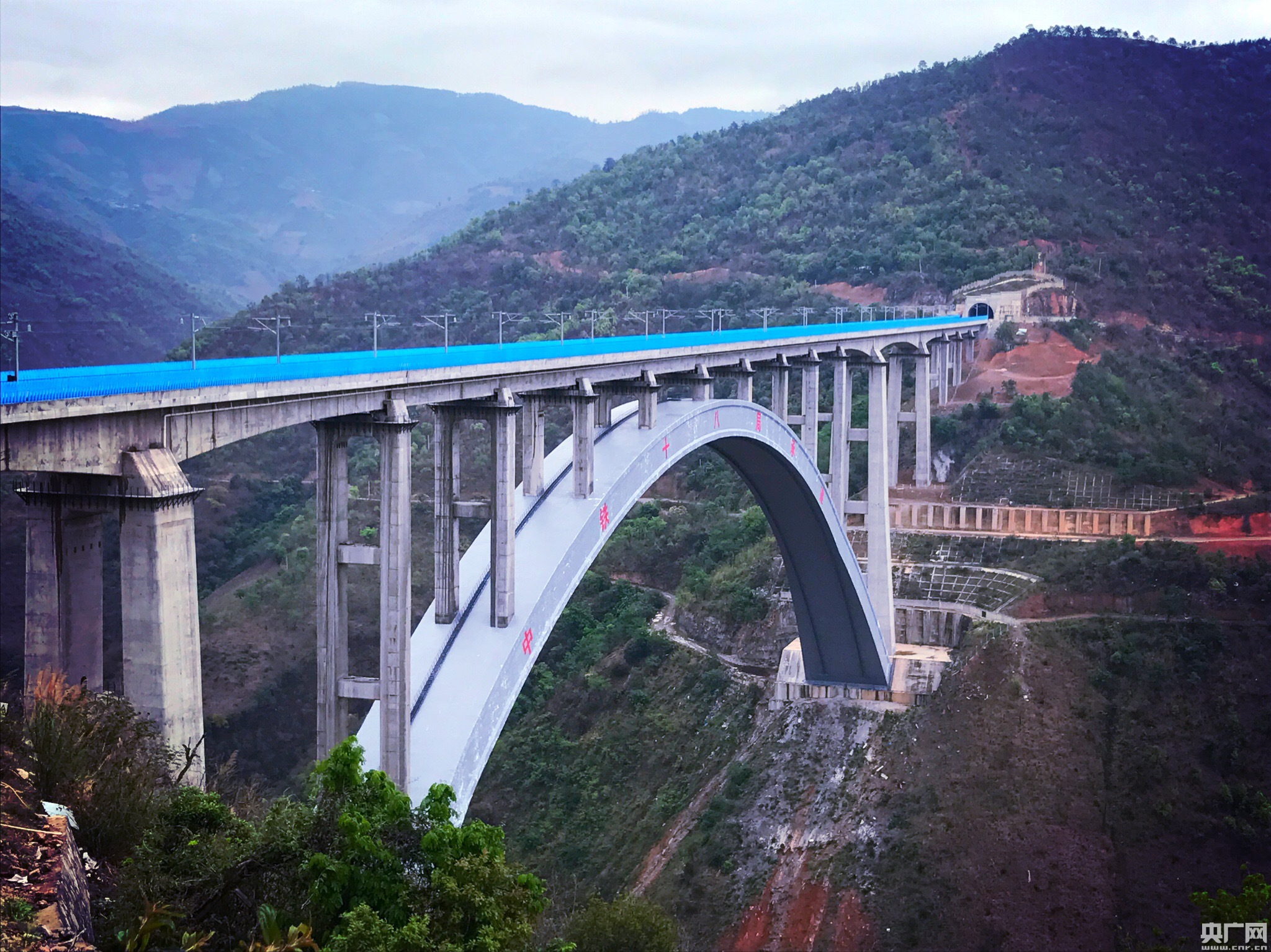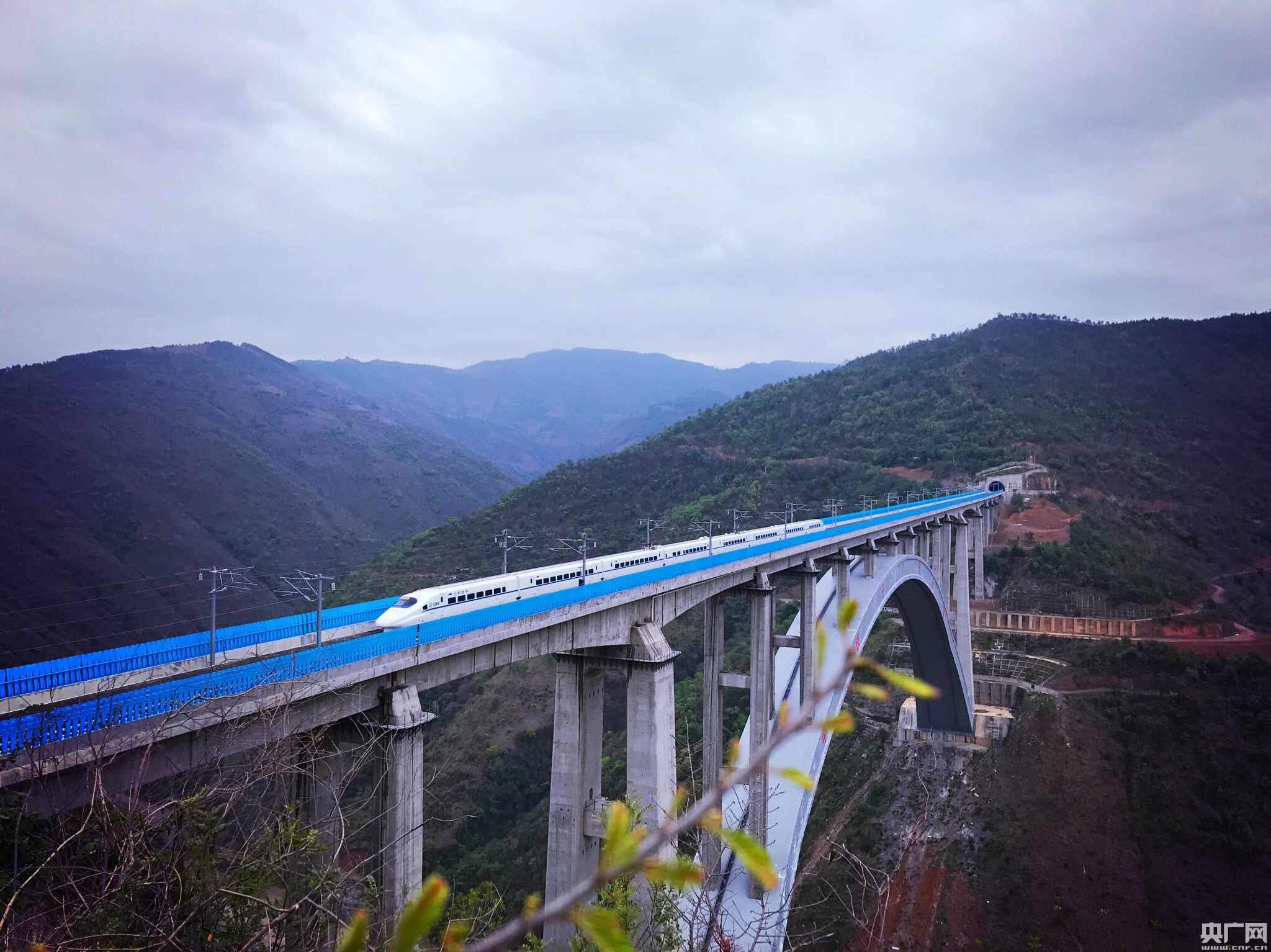 2017年4月23日,紅河,動車組列車在云桂鐵路南盤江特大橋上飛馳。 央廣網(wǎng)紅河4月23日消息(記者何微)近日,由中國鐵路總公司組織的“發(fā)現(xiàn)最美鐵路”系列活動在滇、桂舉行,本期主題“夢想飛躍云桂間”。23日,活動走進云南省紅河哈尼族彝族自治州,探訪動車組列車在云桂鐵路上飛馳“云端”的絕美景色。 據(jù)悉,云桂鐵路全長710公里,橋隧總長500公里,設(shè)計車速200公里至250公里,2016年12月28日全線開通運營,從昆明到南寧的行車時間由原來的12個小時縮短為5個小時。成為促進廣西、云南多民族地區(qū)經(jīng)濟發(fā)展的一條致富路。 在紅河州彌勒市與文山州丘北縣交界處,赤色的南盤江水蜿蜒前行,江面上270米高空處,云桂鐵路南盤江特大橋凌空而立,宛如一道飛虹騰云而臥,動車組列車在橋上行駛猶如飛馳在“云端”。 南盤江特大橋,全長852米,是目前世界最大跨度客貨共用高速鐵路特大橋。橋面凌空高出江面270米,大橋兩岸都是懸崖,山勢陡峭,坡度近50度,地形地貌復(fù)雜,山體滑坡、泥石流經(jīng)常發(fā)生。 南盤江特大橋讓天塹變通途,列車伴隨著南盤江水在橋上飛馳,成為云嶺大地上一道靚麗的風景線。 -