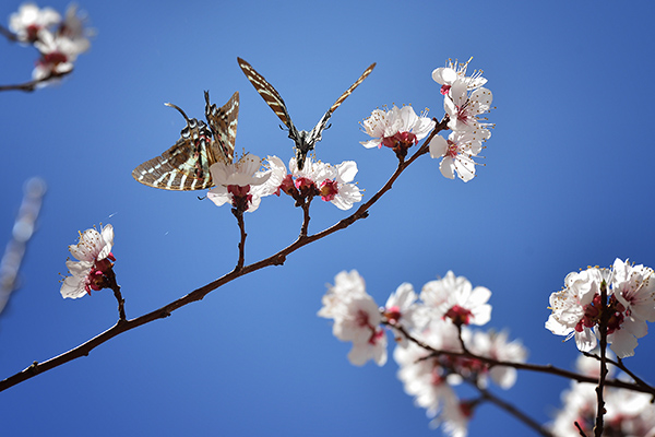 4月的新疆伊吾,春意盎然,葦子峽鄉(xiāng)萬棵遍布河谷的野山杏花競相綻放,引來彩蝶翩翩起舞,交映成趣。春光旖旎,“蝴蝶谷”頓時成為游人踏青賞花、休憩放松的樂園。引得中外游客嘖嘖點贊,紛紛拍照留念。