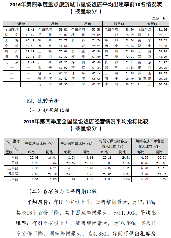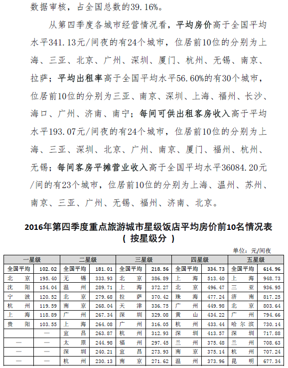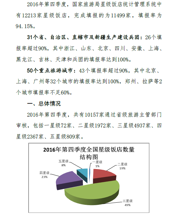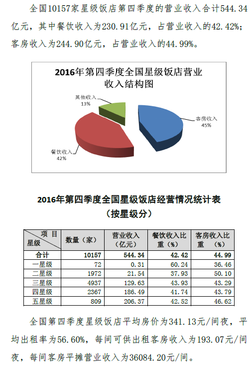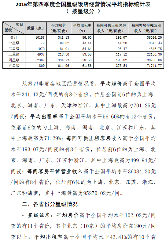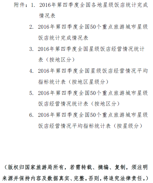國家旅游局;統計公報;星級飯店;第四季度;2016年;全國