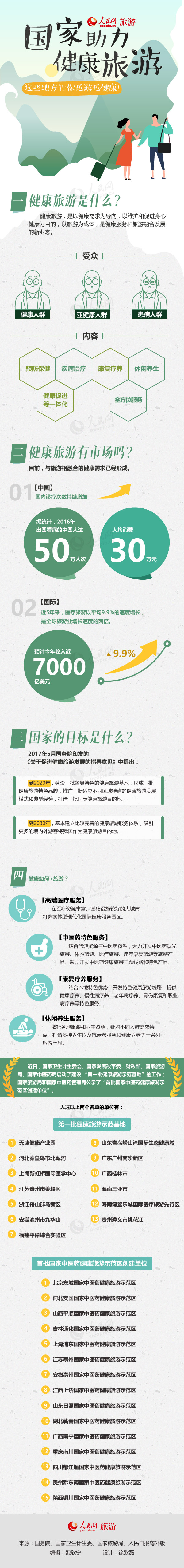 人民網北京9月22日 (魏欣寧)健康旅游是健康服務和旅游融合發(fā)展的新業(yè)態(tài),發(fā)展健康旅游對擴內需、穩(wěn)增長、促就業(yè)、惠民生、保健康,提升我國國際競爭力具有重要意義。近日,國家多部委先后聯(lián)合公示了“第一批健康旅游示范基地”和“首批國家中醫(yī)藥健康旅游示范區(qū)創(chuàng)建單位”,大力推動健康旅游的建設發(fā)展。