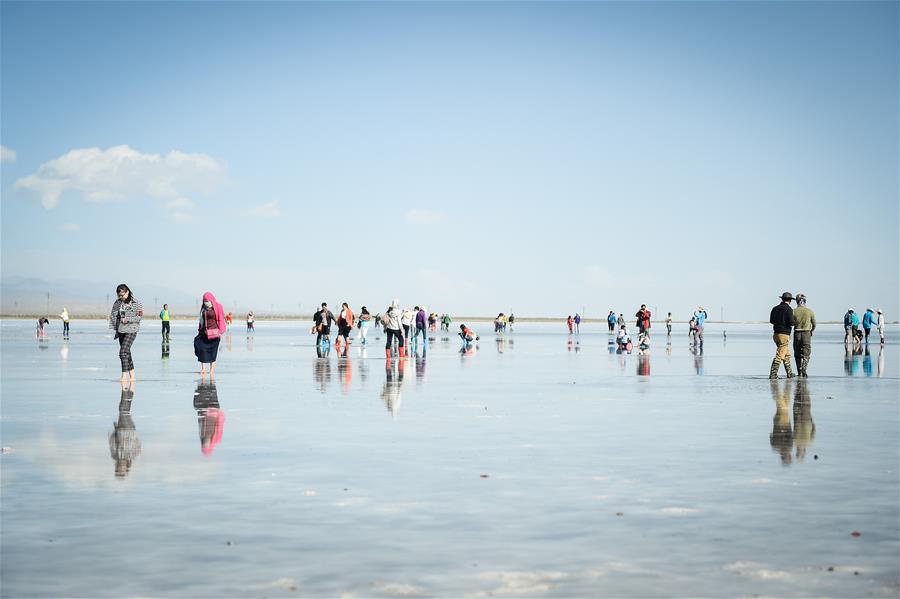 游客在茶卡鹽湖游覽(2015年8月22日攝)。 從幾萬游客到超過270萬人次,被譽(yù)為中國“天空之鏡”的茶卡鹽湖幾年間變身網(wǎng)紅景區(qū),已成為游客到青海旅游的必到景點(diǎn)之一。作為一個(gè)工業(yè)鹽湖,茶卡鹽湖何以成為熱門景區(qū)?旅游興起對周邊群眾的帶動效益如何?景區(qū)服務(wù)質(zhì)量如何同步提升?新華社記者進(jìn)行了實(shí)地探訪。新華社記者 吳剛 攝 -