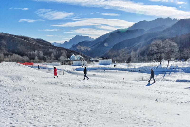 1月14日,玉渡山風(fēng)景區(qū)利用不凍山泉制作的冰雪景觀。 近日,眾多游客來到北京市延慶區(qū)玉渡山冰雪世界體驗(yàn)冰雪游樂活動(dòng)。延慶區(qū)玉渡山位于燕山山脈海坨山腳下,玉渡山風(fēng)景區(qū)利用氣溫低、高山降雪和不凍山泉等自然優(yōu)勢(shì)打造了人工冰瀑、冰川等冰雪景觀,以及高山滑冰滑雪、雪地爬犁、雪圈等冰雪游客項(xiàng)目,每天吸引各地游客超過1000人次。 新華社記者 李欣 攝 -