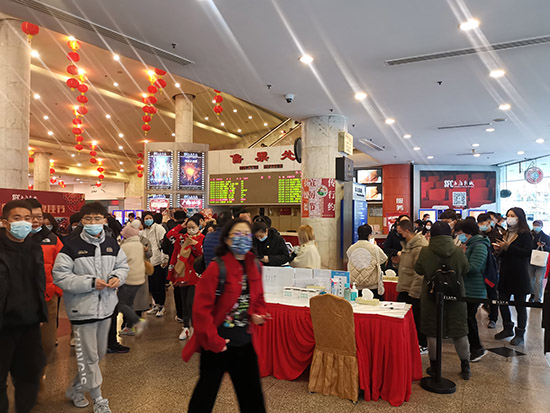 2021年春節(jié)檔電影院里一派熱鬧的節(jié)日景象。上海影城供圖