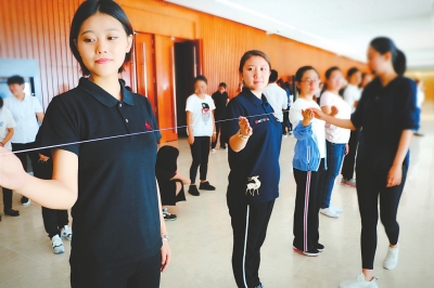 近日,敦煌國(guó)際會(huì)展中心大廳內(nèi),敦煌國(guó)際文化發(fā)展公司對(duì)服務(wù)保障人員開展迎接手勢(shì)禮儀培訓(xùn)。通訊員謝沛宏