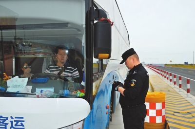 公安民警與武警戰(zhàn)士共同駐守在敦煌市東沙門公安臨時(shí)檢查站,對(duì)進(jìn)入敦煌市的車輛進(jìn)行檢查。圖為檢查過站的旅游大巴。通訊員楊夏茹