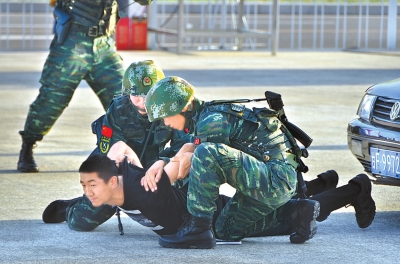 近日,敦煌市舉行應(yīng)急處突演練,檢驗(yàn)了安保隊(duì)伍的精神風(fēng)貌和安保能力。圖為武警處置遇襲緊急情況。通訊員楊夏茹
