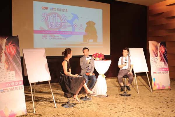 8月24日,音樂節(jié)目中心都市之聲1018俱樂部月度活動---《今夜平安里》心理沙龍第二季成功舉辦。這一季的主題針對當(dāng)今白領(lǐng)人群單身男女在兩性交往中遇到的難題展開,由《今夜平安里》主播阿蘇,《后海星光下》主播孫錢主持,特別邀請北京大學(xué)精神衛(wèi)生博士汪冰老師擔(dān)任特邀嘉賓,和現(xiàn)場聽友們通過互動游戲,心理講座等多種方式深入探討了“你為什么還是一個人”的情感困擾。