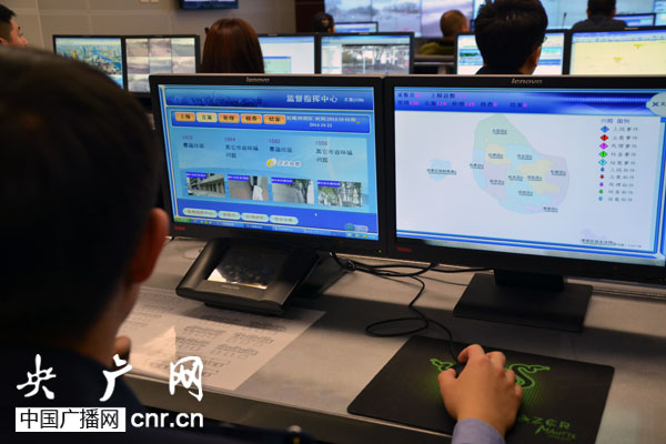 網(wǎng)格化管理指揮中心工作人員正在進(jìn)行任務(wù)處置 央廣網(wǎng)記者寧靜_攝