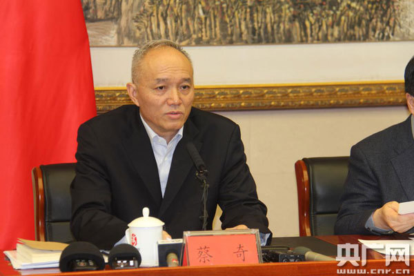 北京市長蔡奇在中央媒體“京津冀協同發(fā)展調研行”專題座談會上發(fā)言 央廣網記者王晶 攝