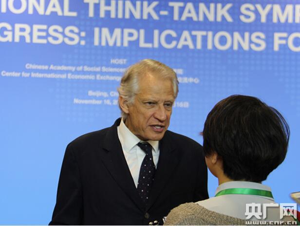 法國(guó)前總理多米尼克·德維爾潘在接受記者采訪(央廣網(wǎng)記者 曹宇 攝)