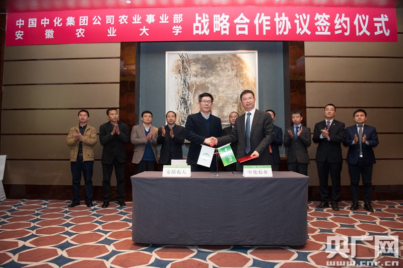 當(dāng)天,中化農(nóng)業(yè)還與安徽農(nóng)業(yè)大學(xué)舉行了戰(zhàn)略合作簽約儀式。安徽農(nóng)業(yè)大學(xué)黨委書記江春表示,中化農(nóng)業(yè)“7+2”的MAP模式,是發(fā)展現(xiàn)代化農(nóng)業(yè)的有力探索,與安徽農(nóng)大構(gòu)建依托大學(xué)為基礎(chǔ)的農(nóng)業(yè)推廣體系非常契合,希望可以通過合作交流,共同為農(nóng)業(yè)現(xiàn)代化發(fā)展助一臂之力。