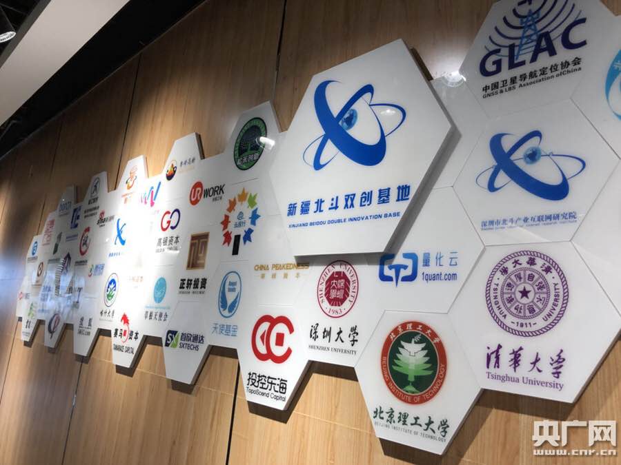 新疆北斗雙創(chuàng)基地展示有聯(lián)絡合作的高校及企業(yè)。(央廣網(wǎng)記者 蔡夢雨 攝)