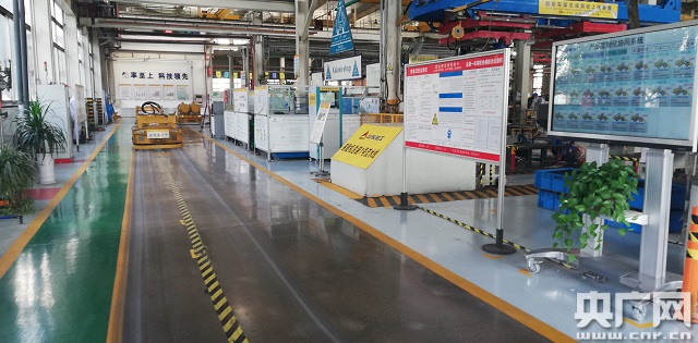名為“奮進(jìn)者5號(hào)”的AGV運(yùn)輸車正在工作(9月13日 攝)(央廣網(wǎng)記者 唐新 攝)