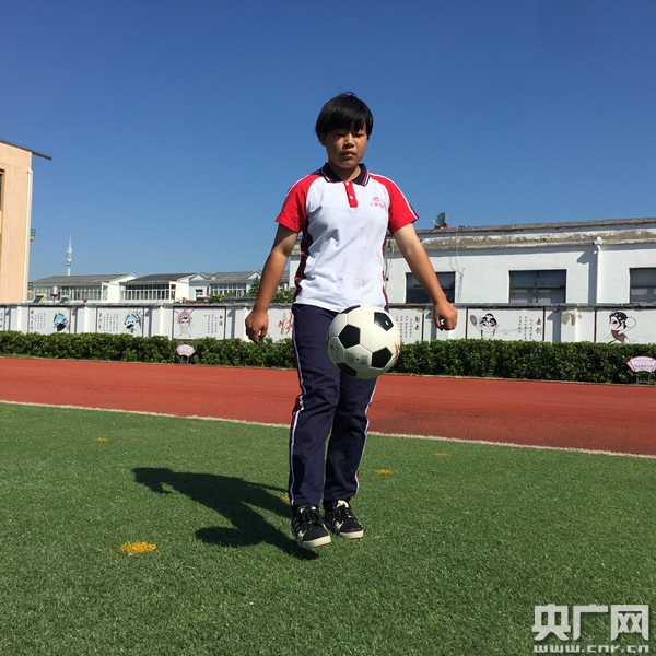 靦腆的笑容、一把馬尾辮,這些特征來自一名少年足球“小將”——小崗學(xué)校女子足球隊隊員章燦燦。記者見到她時,她正和隊友們一起在學(xué)校的操場上練習(xí)墊球。
