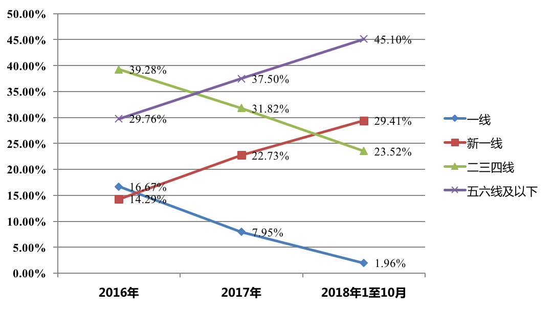 從案件城市分布來(lái)看,呈現(xiàn)兩極化特點(diǎn),新一線大中城市和六線及以下小城市合計(jì)占比近五成。具體分析,在公交車(chē)司乘糾紛刑事案件中,按照城市經(jīng)濟(jì)發(fā)展水平分類,案件量占比為:一線城市(9.87%),新一線城市(21.08%),二線城市(14.35%),三線城市(9.42%),四線城市(8.97%),五線城市(8.97%),六線城市及以下(27.35%)。一線和二三四線城市案件量下降趨勢(shì)明顯,新一線和五六線及以下城市增長(zhǎng)趨勢(shì)明顯。