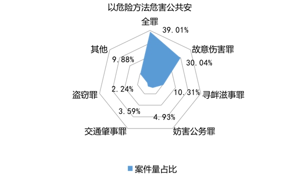 涉案罪名集中在以危險(xiǎn)方法危害公共安全罪和故意傷害罪,合計(jì)占比近七成。在公交車(chē)司乘沖突刑事案件中,案件量占比排名前六的罪名為:以危險(xiǎn)方法危害公共安全罪,故意傷害罪,尋釁滋事罪,妨害公務(wù)罪,交通肇事罪,盜竊罪。其中,以危險(xiǎn)方法危害公共安全罪占比為39.01%,故意傷害罪占比為30.04%。
