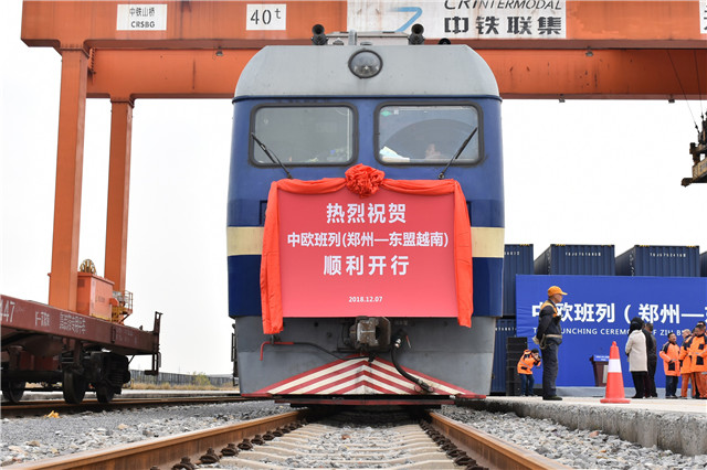 2018年12月7日,鄭州至東盟越南的中歐班列開行。(鄭州國際陸港開發(fā)建設(shè)有限公司供圖)