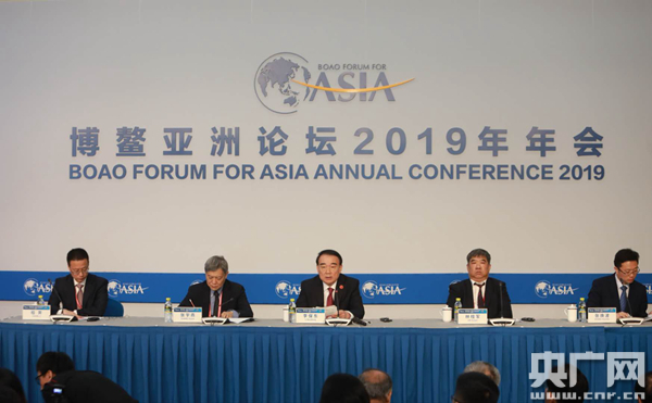26日上午,博鰲亞洲論壇 2019 年年會(huì)新聞發(fā)布會(huì)暨旗艦報(bào)告發(fā)布會(huì)舉行。(央廣網(wǎng)記者 張凱航 攝)
