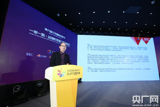 4月19日,長期從事電影產(chǎn)業(yè)和電影受眾研究、聚影匯創(chuàng)始人朱玉卿,在第九屆北京國際電影節(jié)“‘一帶一路’動漫影視推介暨創(chuàng)投會”上進(jìn)行分享。(央廣網(wǎng)記者 王晶 攝)