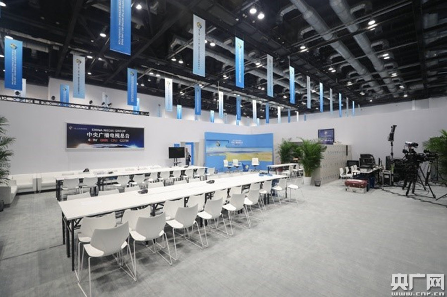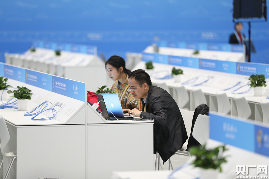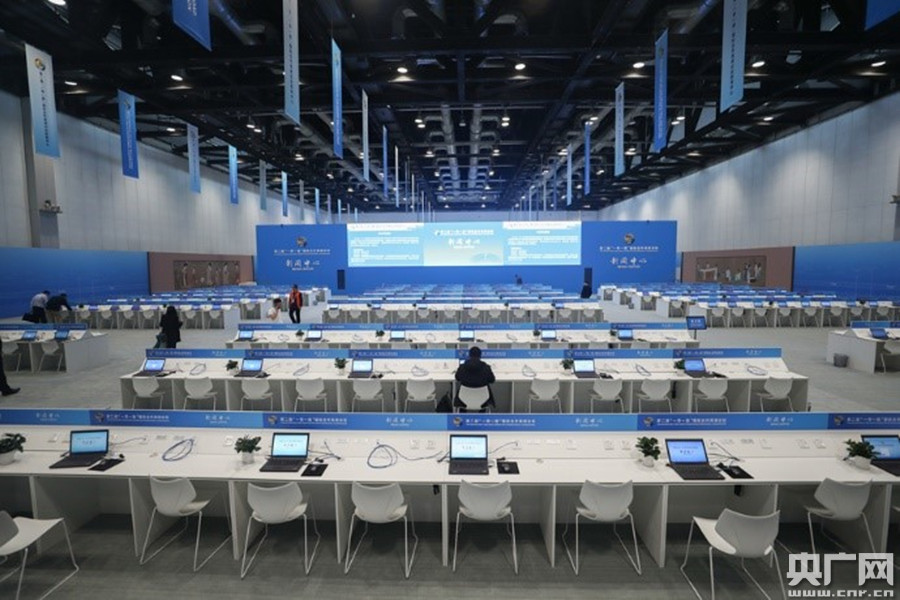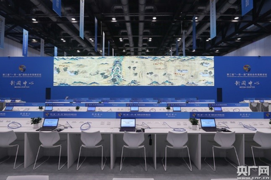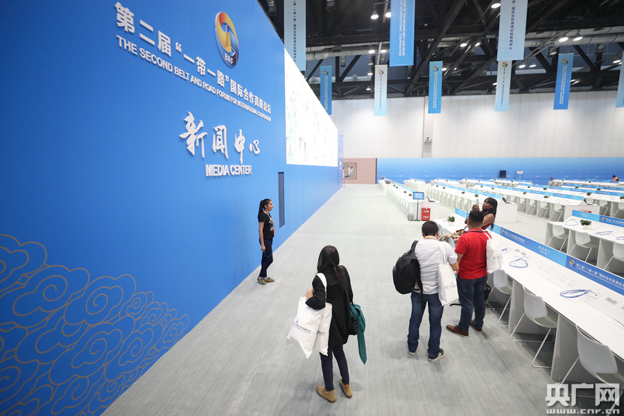 第二屆“一帶一路”國際合作高峰論壇新聞中心。(央廣網(wǎng)記者 韓靖 攝)