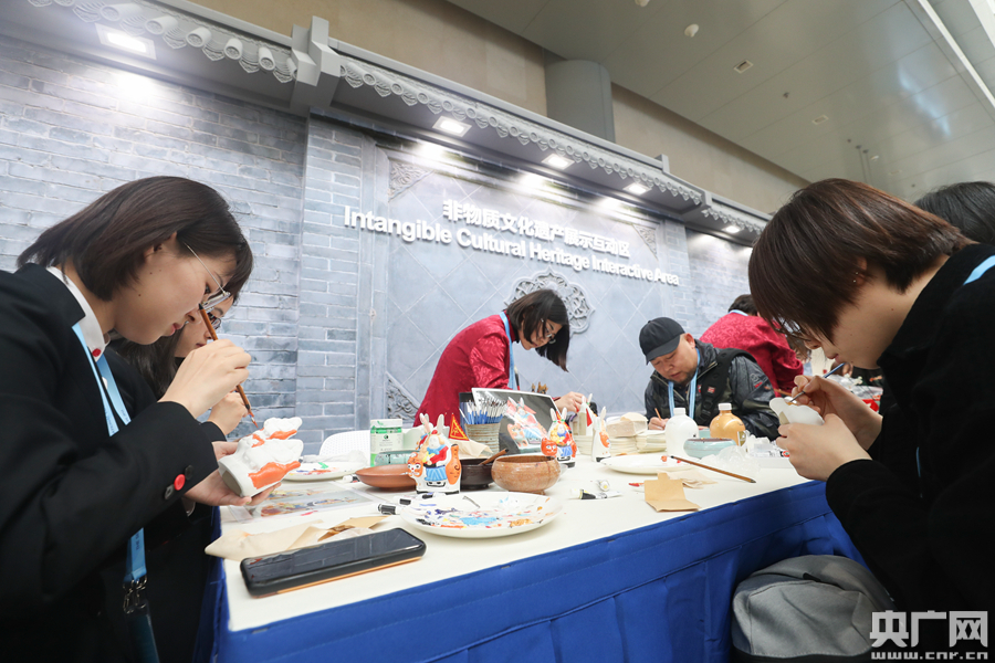 非物質(zhì)文化遺產(chǎn)互動區(qū)邀請4組北京的非物質(zhì)文化遺產(chǎn)傳承人,為媒體記者進行傳統(tǒng)國畫、傳統(tǒng)攢玉石宮花、兔爺彩繪、軟陶工藝制作等表演,中外媒體記者可親身體驗非遺制作,深入了解北京特色傳統(tǒng)文化。