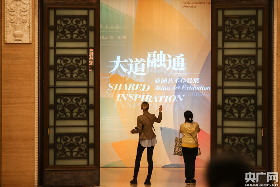 觀眾參觀“大道融通——亞洲藝術作品展”。(央廣網記者 韓靖 攝)