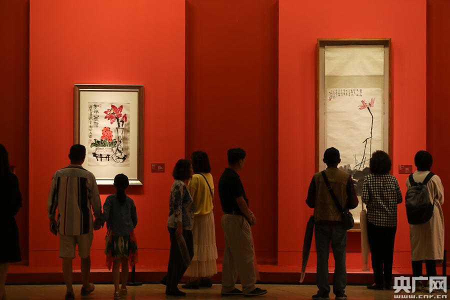 “東方寫意”展區(qū)的作品,吸引了大量觀眾。(央廣網記者 韓靖 攝)