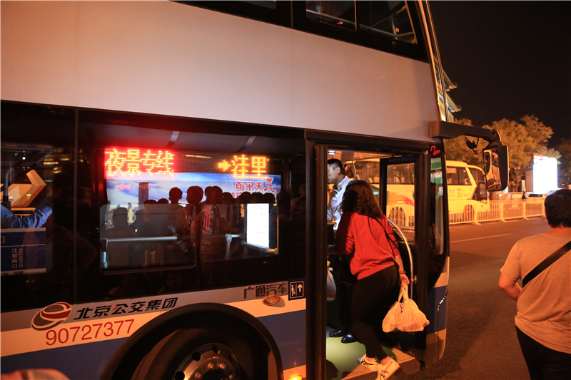 “夜景專線均使用雙層純電動公交車,擁有高景觀、零噪音、零排放的特點,游客在二層觀光時視野更好!北本┕幌嚓P(guān)負責人介紹,專線運營時間為6月7日至6月9日,前門站發(fā)車時間為18:20、18:40、19:00,設前門、王府井路口北、鑼鼓巷、鼓樓、地鐵北土城站、北辰西橋北、國家體育館、洼里南口8站;洼里南口站發(fā)車時間為20:00、20:30、21:00,設洼里南口、國家體育館、北辰西橋北、地鐵北土城站、北新橋路口西、東內(nèi)小街、朝陽門南、前門東8站。單一票價10元。