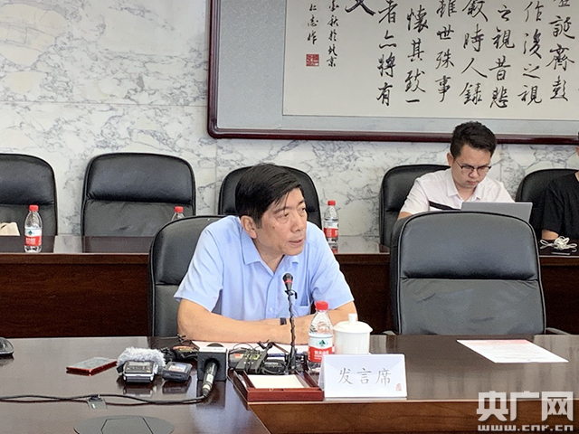 圖為霍建國在研討會發(fā)言。(央廣網(wǎng)記者 馬文靜 攝)