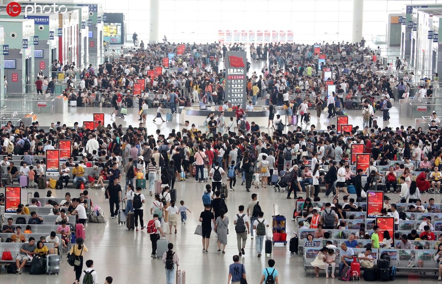 2019年10月5日,在江西南昌西車站,旅客正在候車。國慶假期過半,全國鐵路于當日開始出現(xiàn)返程客流高峰。(央廣網(wǎng)發(fā) 東方IC供圖)