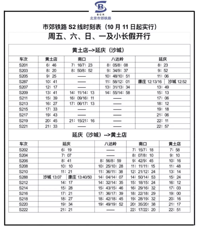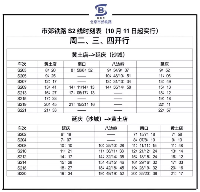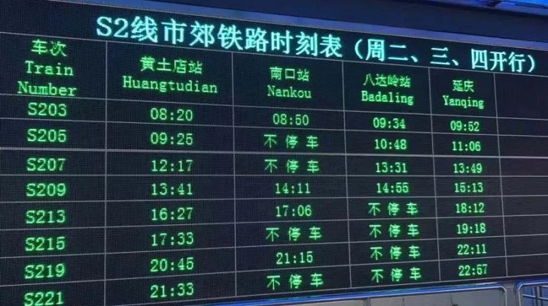 S2線時刻表(央廣網(wǎng)發(fā) 北京鐵路供圖)