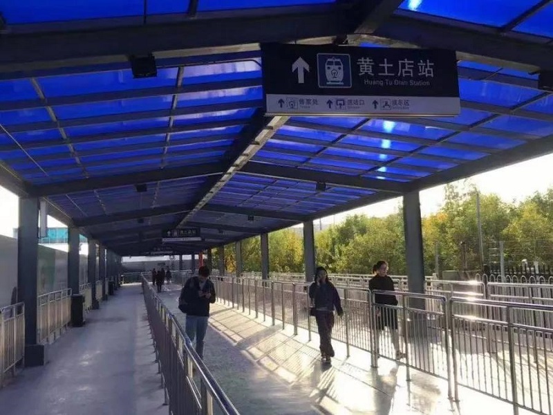 北京市郊鐵路S2線(延慶線)和S5線(懷密線)市內(nèi)始發(fā)站均為黃土店站。黃土店站緊鄰地鐵13號線、8號線霍營站,乘客從霍營地鐵站出站后,沿著柵欄和指示牌就可輕松到達火車站。