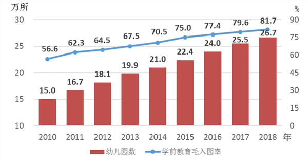 2010—2018年幼兒園數(shù)及學(xué)前教育毛入園率情況(央廣網(wǎng)發(fā) 國(guó)家統(tǒng)計(jì)局供圖)