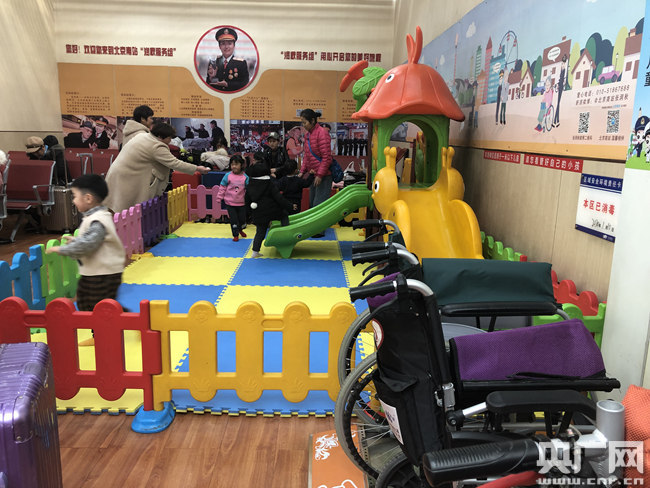北京南站潤秋服務(wù)組兒童娛樂區(qū)(央廣網(wǎng)記者 王晶 攝)
