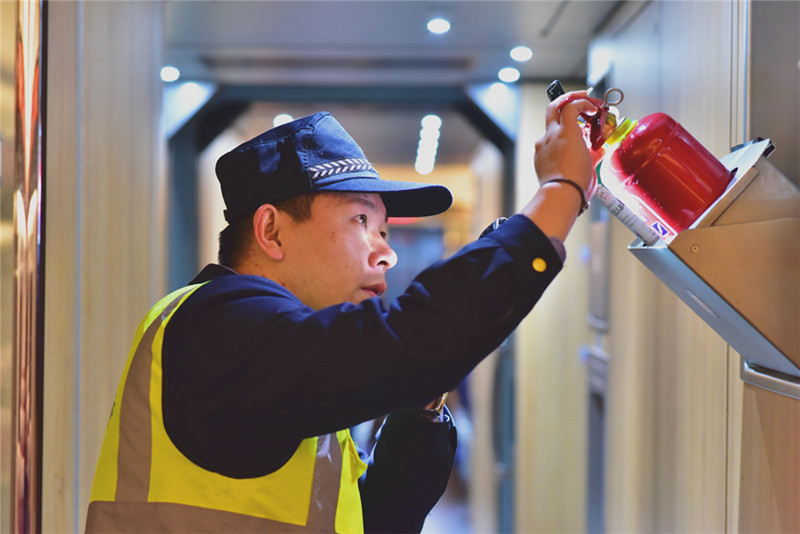 5點(diǎn)10分,薛稀吉日開始了擔(dān)當(dāng)車次的車上作業(yè)(央廣網(wǎng)發(fā) 陳亞 攝)