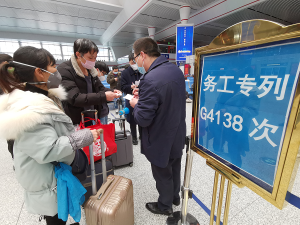 上海局集團(tuán)公司相關(guān)人員介紹,杭州市政府對(duì)所有乘車的外地復(fù)工人員做好“健康碼”的審核,組織符合健康要求的員工佩戴口罩進(jìn)站乘車。在貴陽北站,鐵路部門開辟綠色通道,指定專人引導(dǎo)進(jìn)站,安排30余人、12臺(tái)設(shè)備加強(qiáng)體溫監(jiān)測(cè),并設(shè)置候車專區(qū)分散就坐。在G4138次列車上,乘務(wù)人員組織復(fù)工旅客分散就坐,減少在車廂內(nèi)走動(dòng)次數(shù)。