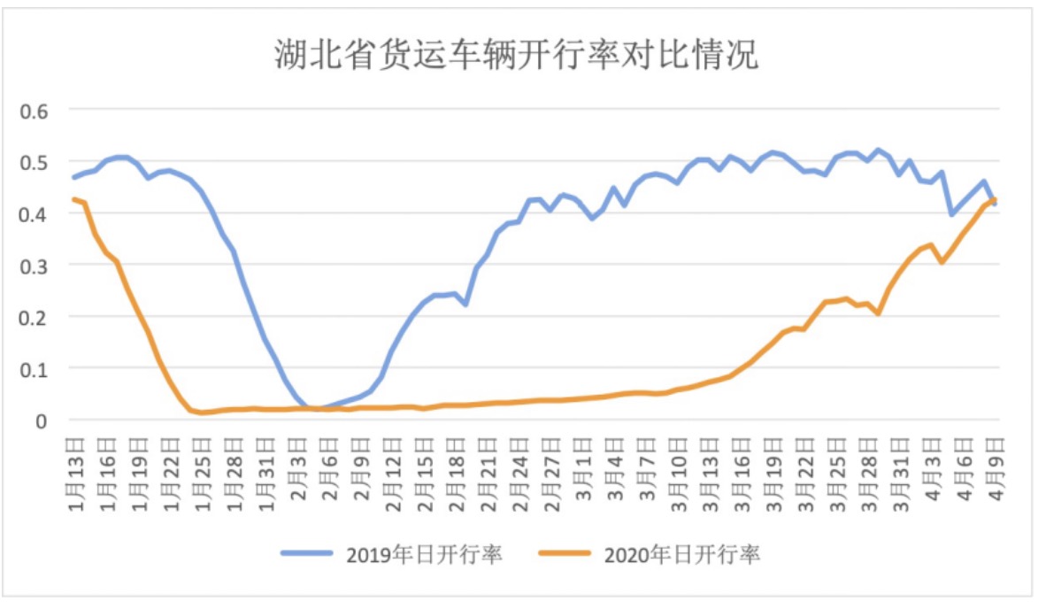 湖北省貨運(yùn)車輛開(kāi)行率對(duì)比情況(交通運(yùn)輸部供圖)
