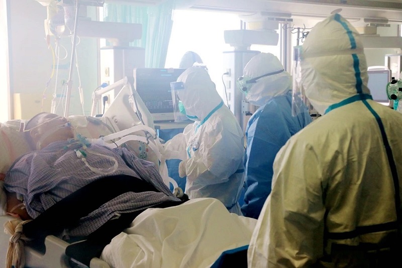 7月3日,地壇醫(yī)院ICU病房,劉景院與杜斌、童朝暉、姜利共同救治危重癥患者(央廣網(wǎng)發(fā) 圖片來源:北京地壇醫(yī)院)