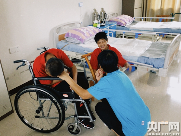 來到托養(yǎng)中心后,張鐸兄妹變化不少!澳憧,現(xiàn)在妹妹見人,也會笑一笑了!睂λ麄兊淖兓o工張秀蓮感觸最深。每隔一個小時,她就要到房間看他倆一次,晚上也要起來看三次,更換尿不濕,蓋被子,早上五點多又得早早起來,給兄妹倆洗漱,把飯端到房間喂他們。