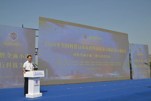 9月19日上午,2020年“全國(guó)科普日”山東省暨淄博市主場(chǎng)活動(dòng)啟動(dòng)儀式在淄博市齊盛湖公園隆重舉行。山東省副省長(zhǎng)凌文通過(guò)視頻連線(xiàn)出席啟動(dòng)儀式并講話(huà),省科協(xié)黨組書(shū)記、副主席王春秋,省教育廳副廳長(zhǎng)關(guān)延平,省衛(wèi)生健康委副主任牟善勇,省應(yīng)急管理廳二級(jí)巡視員、總工程師張秀文,省科協(xié)副主席陳愛(ài)國(guó),中央廣播電視總臺(tái)音頻客戶(hù)端業(yè)務(wù)負(fù)責(zé)人等,淄博市委常委、副市長(zhǎng)宋振波出席活動(dòng)。省科協(xié)黨組書(shū)記、副主席王春秋主持啟動(dòng)儀式。