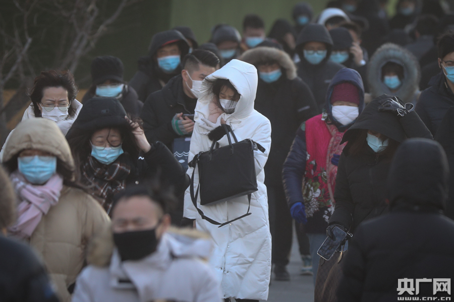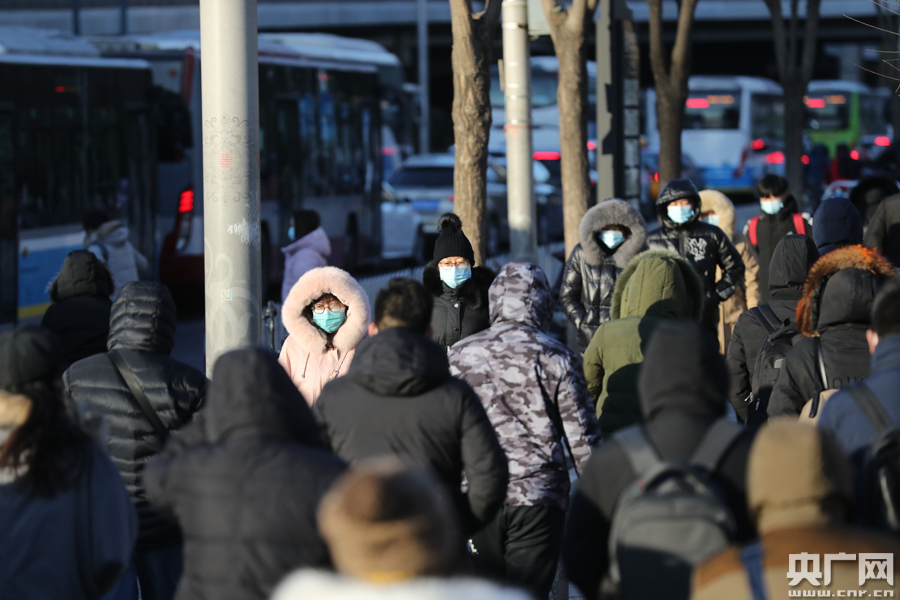 1月6日,北京國貿(mào),早高峰時段市民冒嚴寒出行(央廣網(wǎng)記者 韓靖 攝)