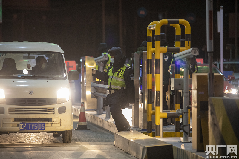 防疫人員對(duì)部分進(jìn)京車(chē)輛進(jìn)行檢查(央廣網(wǎng)記者 張佳琪 攝)